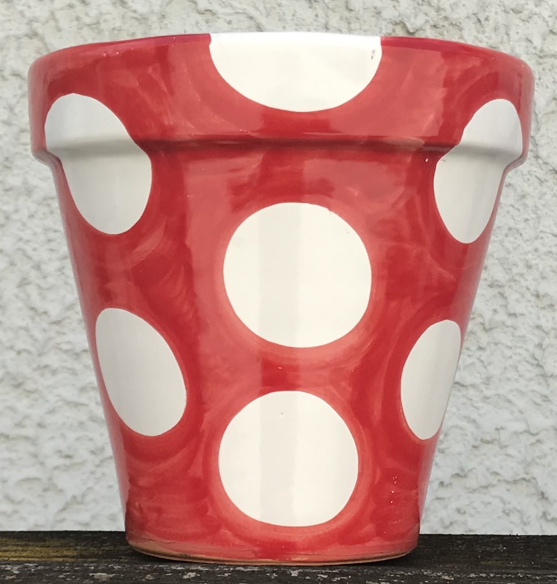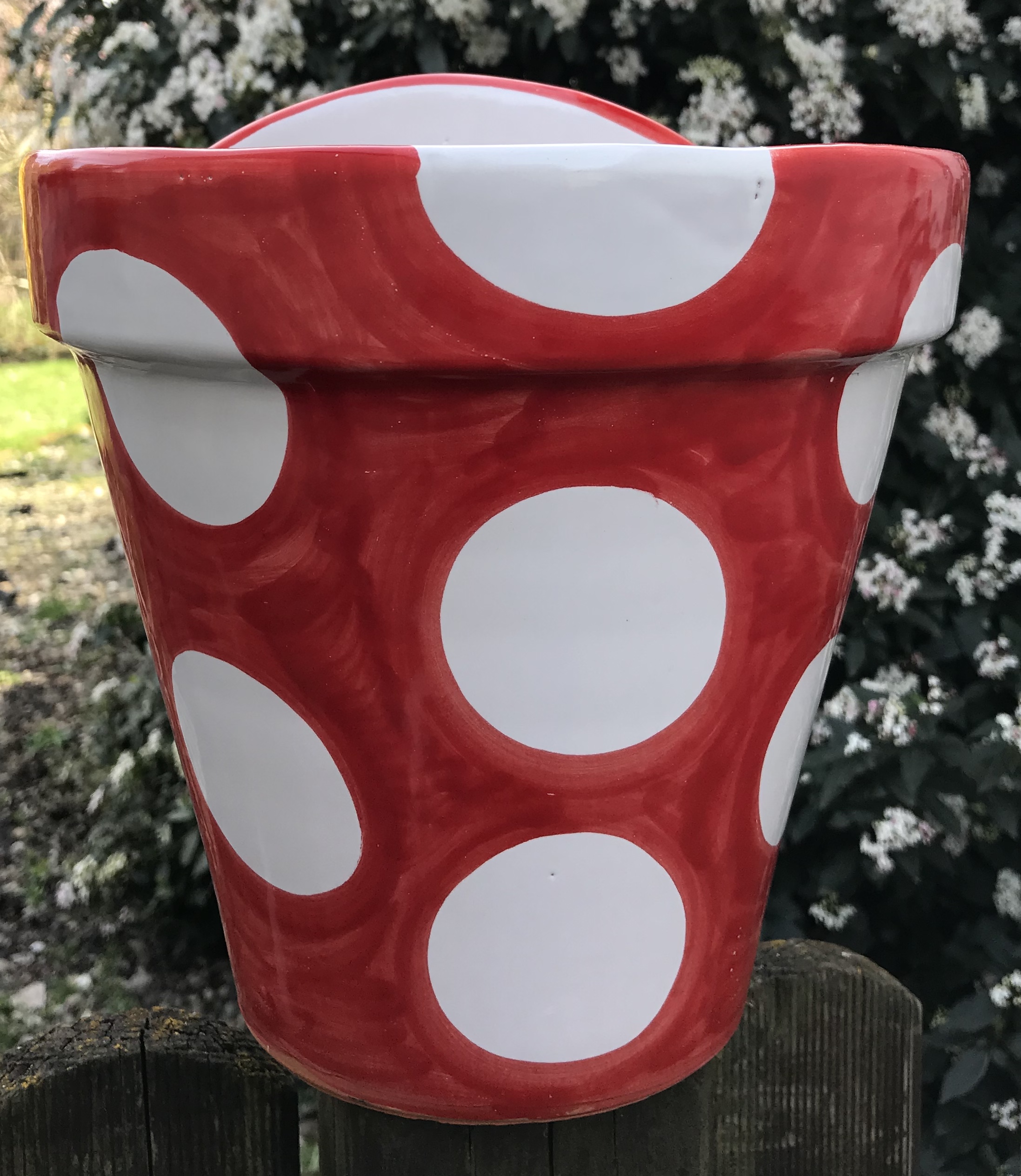 Wandblumentopf, glasiert, rot mit weissen Punkten