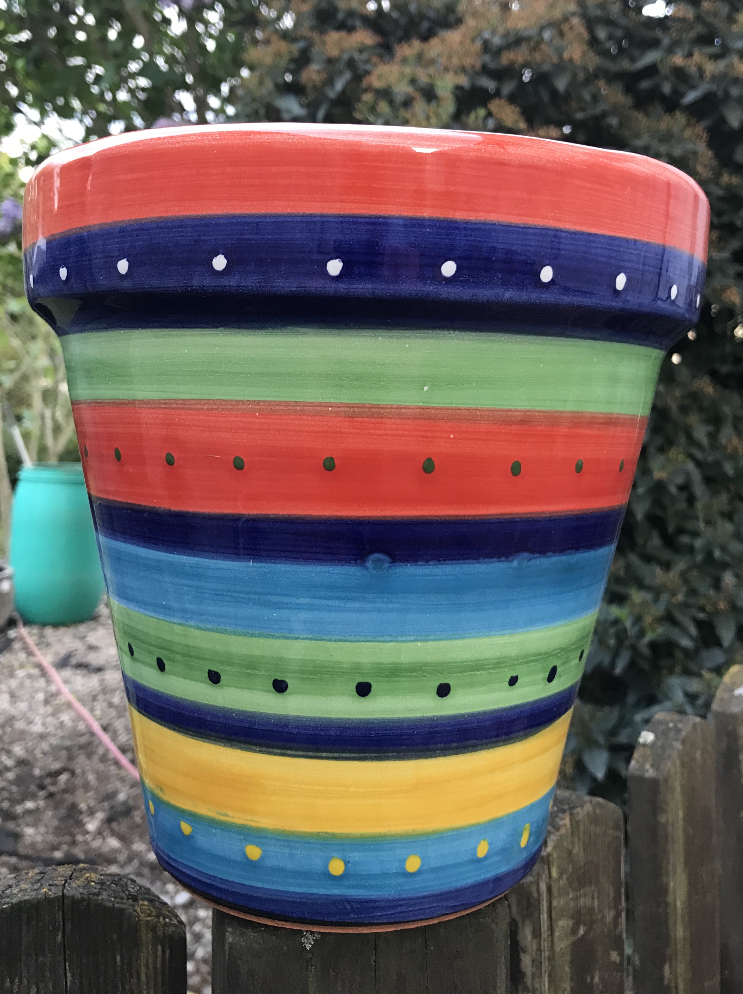 Wandblumentopf mit Querstreifen, orange-blau-grün-gelb mehr