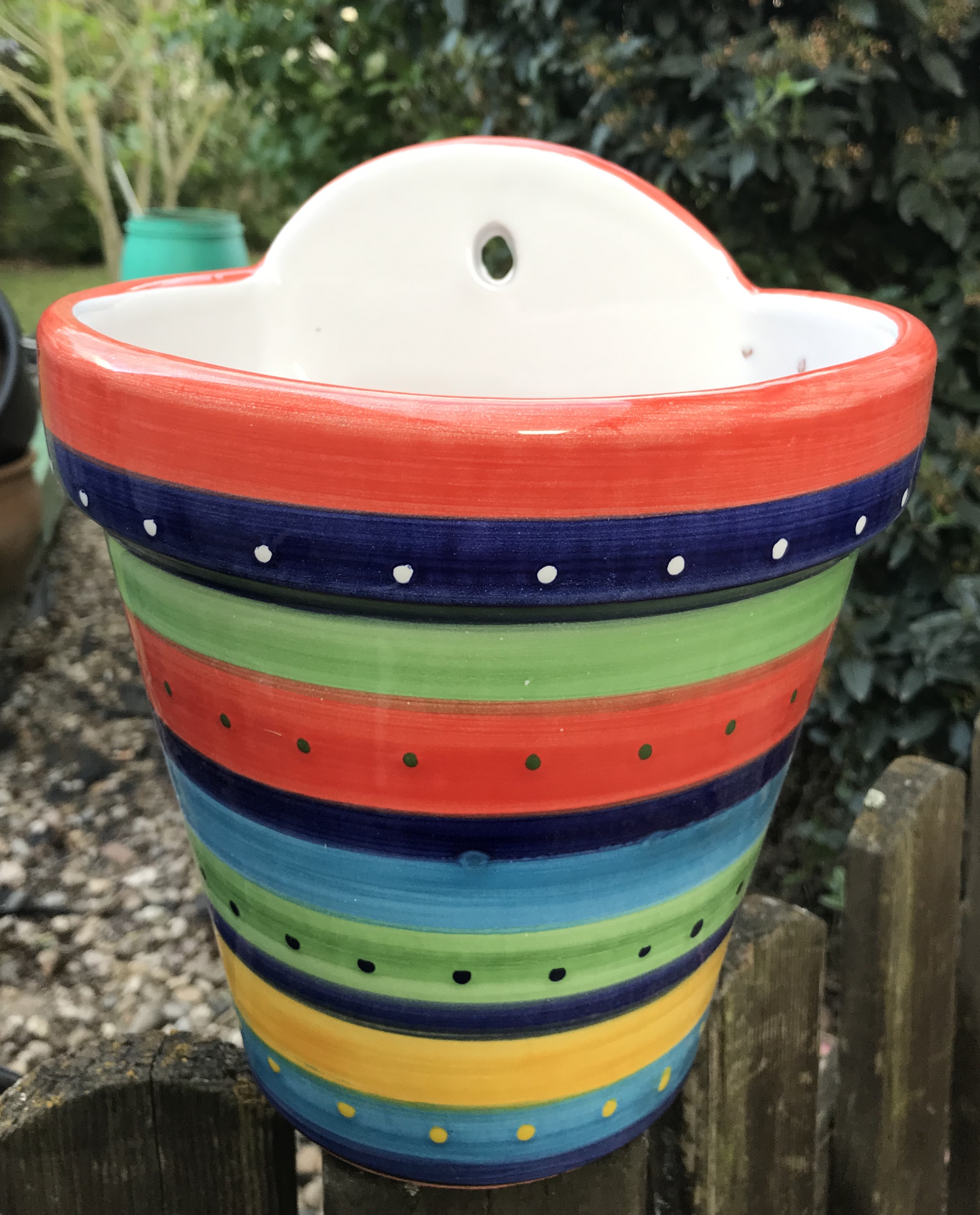 Produktinformationen "Wandblumentopf mit Querstreifen, orange-blau-grün-gelb"